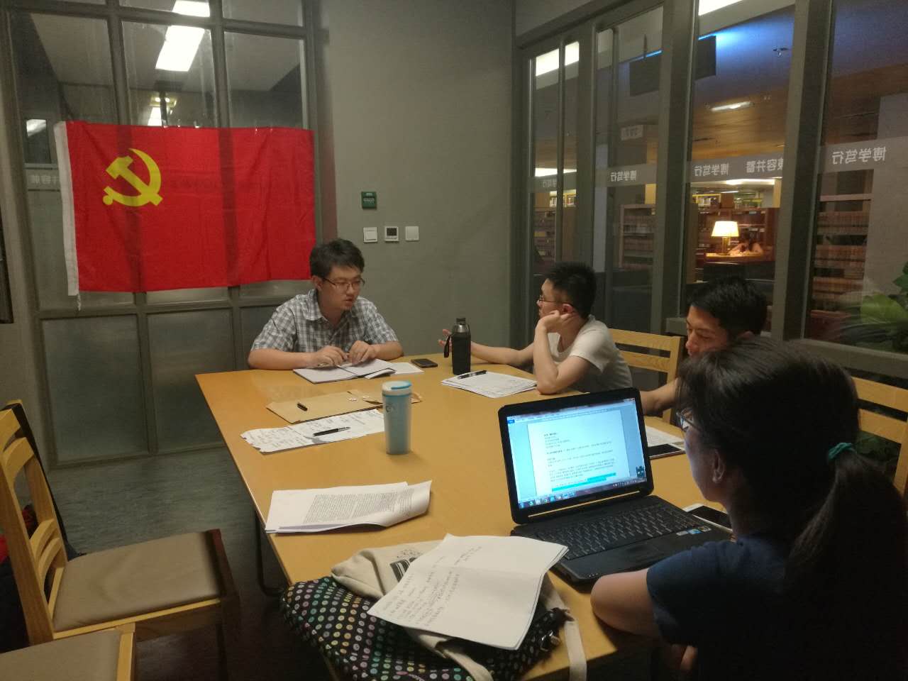 周年,党的光辉历史是党员的宝贵财富。与会同志认真阅读《关于建国以来党的若干历史问题的决议》等重要历史文件,并深入学习习近平总书记关于“两个不能否定”的重要论述。讨论会中,何磊静同志将建国后前三十年的成就概括为两方面。第一,前三十年的建设为改革开放奠定了扎实的物质基础。第二,前三十年的的建设中涌现的优秀共产党员和先进事迹为我们建设社会主义提供了巨大的精神财富。积极分子李成蹊从国际局势出发认为我们当下较为稳定的周边环境得益于前三十年遗留下来的“和平红利”。预备党员余立涵用“威慑信用”理论解释了成蹊所说的“和平红利”。随后他补充了改革开放前三十年在农田水利,医疗卫生等诸多方面的具体成就,进一步阐明了前三十年建设的重要性。马远征同志则提出,改革开放的成绩是站在前三十年肩膀上实现的。看待前三十年的历史不能脱离中国近代的重大历史任务——实现工业化。从工业化进程的角度我们可以更好理解城乡二元体制、工农业剪刀差等历史问题的出现。靳夏楠同志根据在讨论会中提出了一系列十分有益的问题,引发了广泛的讨论。