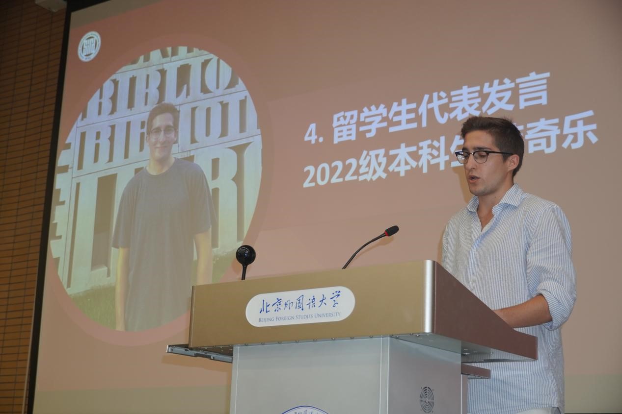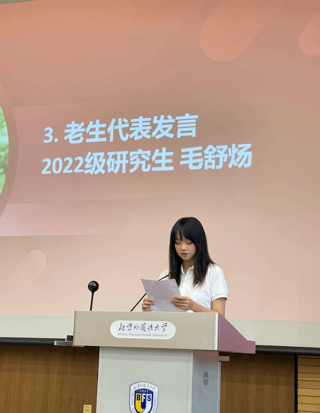 国际组织与全球治理专业本科生李雨积表达了对公司新设专业的理解与期待,号召同学们在北外勇敢寻梦、奋发向前。外交学专业硕士研究生邵一鸣回忆了自己在武警云南边防总队缉毒缉私的经历,表达出对北外的向往与热爱,呼吁同学们厚植家国情怀,开拓全球视野,锻造专业本领。老生代表2022级硕士生毛舒炀谈到,在北外这一共和国外交官的摇篮里,yl23411永利为中国外交事业发展做出了贡献,为同学们提供了发现自我、挑战自我、超越自我的极佳平台。2022级本科生职工代表韩奇乐嘱咐同学们,要以积极的心态面对问题,灵活运用身边的资源进行语言和文化交流。