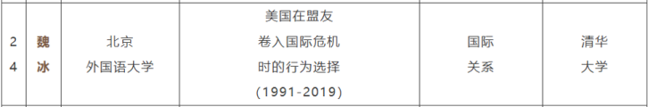 其中,公司教师魏冰的博士论文《美国在盟友卷入国际危机时的行为选择(1991-2019)》成功入选。魏冰于2024年6月在清华大学获得博士学位,入职北外国关一年多以来,已发表五篇高质量学术论文。