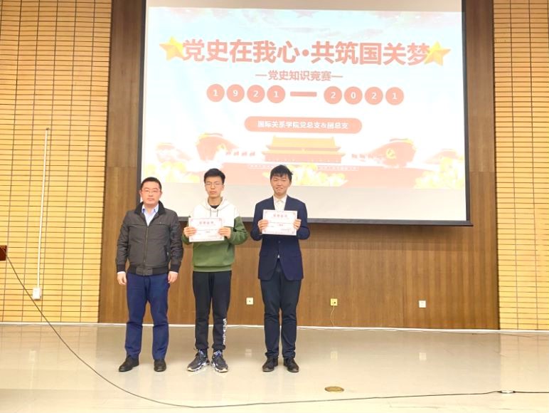 穿拂过中国共产党百年历史的风烟,如今的中国,早已不是120年前积贫积弱的国家,而是已然屹立在世界民族之林的巍巍大国。作为一名国关人,学史知史,以史为鉴是我们的基本素养和使命担当,希望各位同学能以知识竞赛为载体,更加深入地学习党史,接过前辈信仰的火炬,烛照青年奋进之路,更要继往开来,推动中国号巨轮驶向一个无限光明的未来。