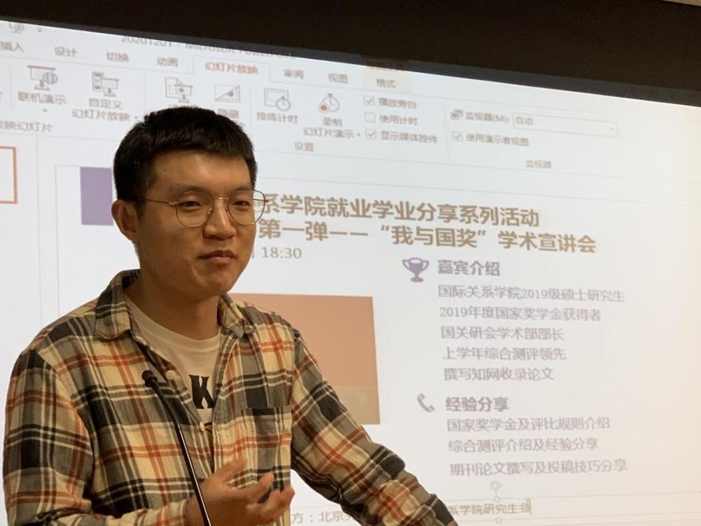 2021年5月17日晚,由北外yl23411永利研究生会主办的“我与国奖”学术宣讲会于逸夫楼515教室成功举办。作为“就业学业分享系列活动”的第一期,本次宣讲会邀请了上年度国家奖学金获得者——2019级国际政治专业硕士研究生尹童,给来自于yl23411永利和国际商公司的诸位同学分享了他的学习和学术经验。