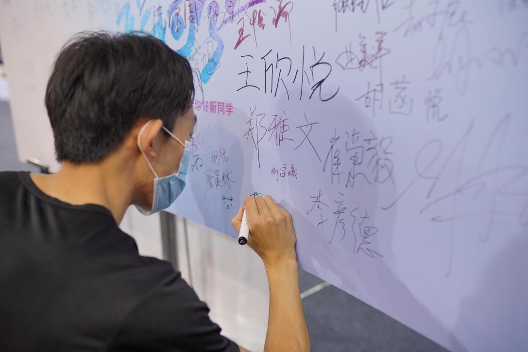 4日,研会迎新继续紧锣密鼓地进行着,尽管场馆外飘洒起了秋雨,但同学们初入北外的期待与热情丝毫未减,迎新气氛欢欣热烈。迎新报到期间,公司领导张效民老师,杨毅老师,王明进老师以及辅导员钱梦婷老师等来到工作现场问候新生并慰问迎新工作人员。在领导老师们的悉心指导下,4日下午,迎新工作顺利落下帷幕。