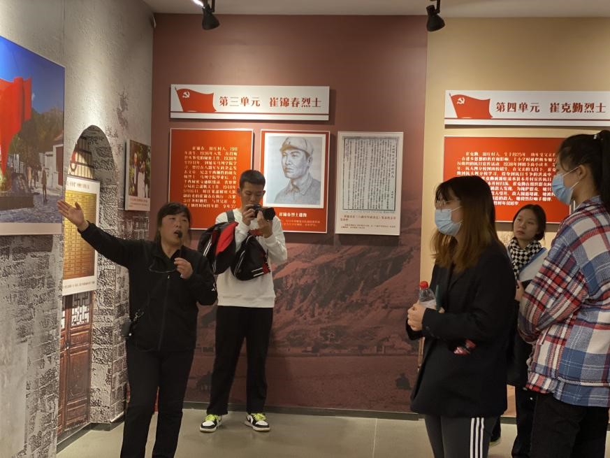 随后,同学们参观了田庄高小党支部旧址、崔显芳故居和《京西星火》展览馆。纪念馆以京西山区中共第一党支部创建人崔显芳的革命事迹为主线,集中展示了京西山区中共组织酝酿、创建、发展和成长的光辉历程和平西抗日根据地的建立与壮大。讲解员详细介绍了崔显芳的生平事迹和革命生涯,同学们认真聆听,被崔显芳同志一门四烈士,代代跟党走的革命事迹深深打动。