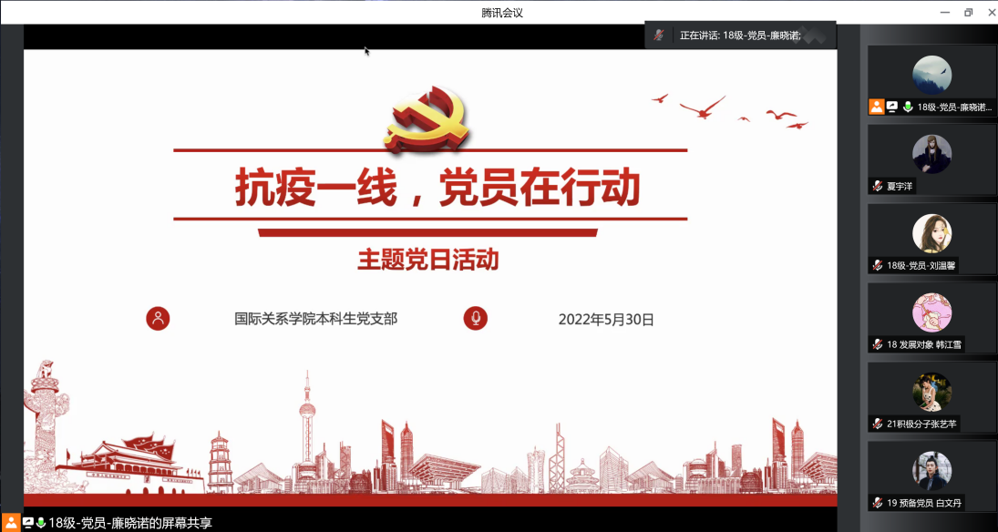 yl23411永利本科生党支部开展线上疫情防控事迹分享主题党日活动