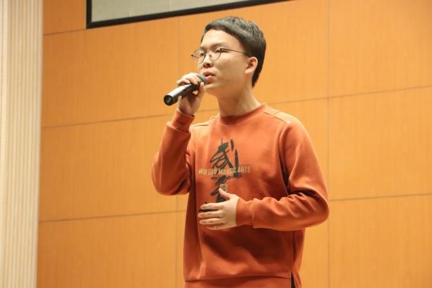 来自北外讲演队的李嘉鹏、韦俊羽、李陈虎、张迪嘉、张宇涵几位同学为大家带来朗诵节目《我爱学习》。正经厚重的音调蕴含着诸多心照不宣的幽默,台下笑声阵阵,掌声热烈