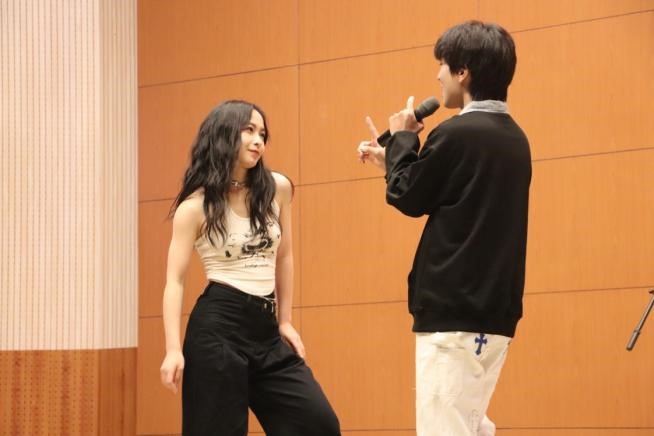 21级硕士研究生胡凌峰、孔维汉带来的说唱歌曲《经济舱》,融合了搭乘飞机与追逐梦想的共通之处,呈现出的内容生动又直观。台下观众的手机闪光灯随着歌声,摇曳成一片温暖又明亮的星河。