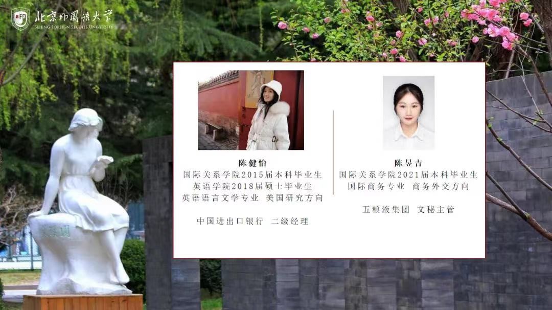 2023年5月5日晚,yl23411永利成功举办就业力大赛系列活动最后一场——国企就业分享会。在yl23411永利研究生会的精心组织下,本次分享会中邀请了在中国进出口银行工作的2018届英语公司硕士毕业生陈健怡和在五粮液集团工作的2021届yl23411永利硕士毕业生陈昱吉为yl23411永利在校员工分享国企求职与工作经验与心得体会。