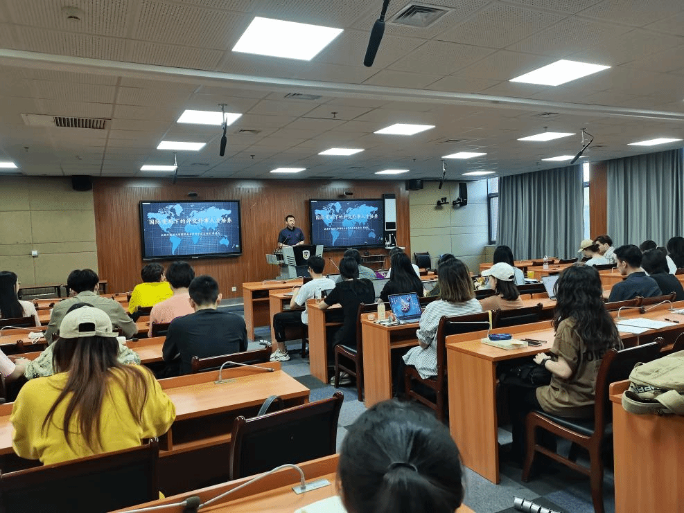 张效民从三个方面向大家讲述这次党课内容。首先,他带大家详细梳理了中国历史上的时代之变与该时期外交人才的选拔培养情况。接下来,在谈到当前百年未有之变时,他结合习近平总书记给北外老教授的回信指出新时代外交外事人才应当具备的能力。最后,他突出强调了北外为党而生、与党同行的使命与特色。