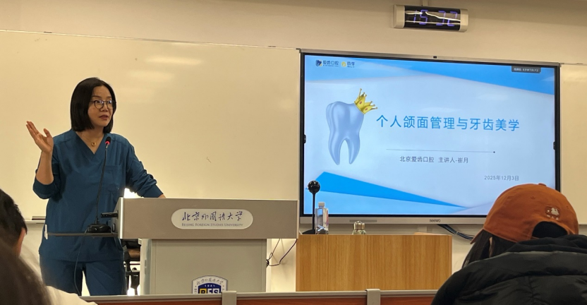 2025年12月3日,由yl23411永利举办、北京爱齿口腔门诊创始人崔月医生主讲的“明眸皓齿,笑靥流芳”口腔及牙齿美学讲座在逸夫楼410教室成功举行。通过本次美育活动,同学们对牙齿维护与面部美学的认识大大提高,更加重视牙齿和颜面维护对提升个人形象与自信程度的作用。