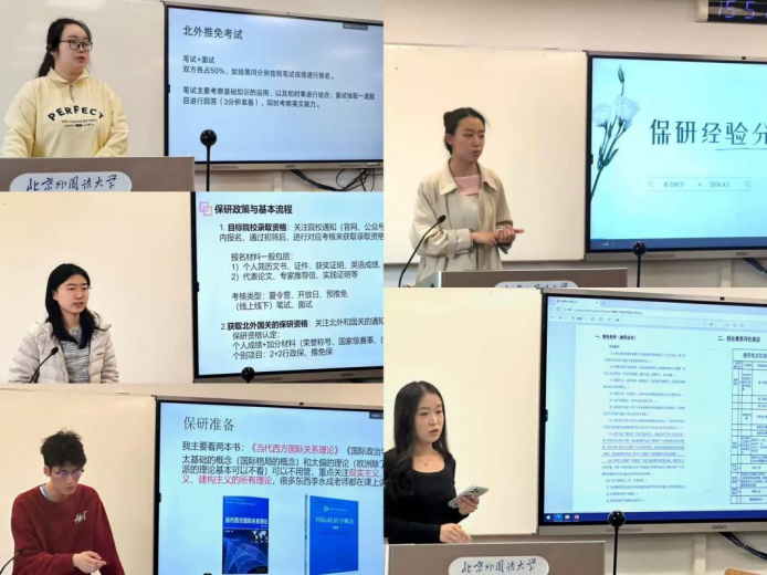 活动现场氛围热烈融洽,参与分享的同学紧扣前期面向全体同学征集的重点关切问题,逐一进行细致解答与深入交流。在场同学认真聆听、积极思考,对保研流程与未来发展路径有了更为清晰、全面的认识。本次分享会不仅为有志于保研的同学搭建了经验交流、答疑解惑的平台,更充分彰显了朋辈引领在青年成长成才中的重要作用。下一步,“筑梦引航”工作室将持续推出系列朋辈思想引领活动,聚焦同学们在学业提升、生涯规划与成长选择中的实际需求,提供更精准、更暖心的支持与引导。
