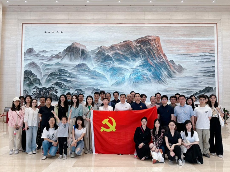 (全体党员在“志合越山海”壁画下的合影)